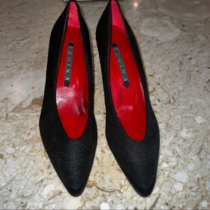 Vintage Regina 80s Black Leather Lined Almond Toe Heels. Size 8.5 Narrow