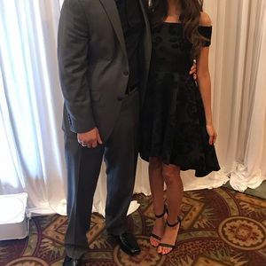 Black high low off the shoulder floral print dress from Windsor