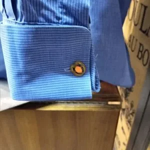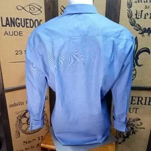 In excellent pre-owned condition. The only flaw is the ink name printed on the label for cleaning. 100% cotton, made in Spain, French cuffs. 16 1/2" neck, pit to pit measures 24", sleeves measure 23". Cuff links not included, Robert Talbott tie sold separately.