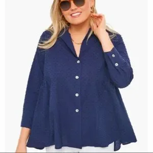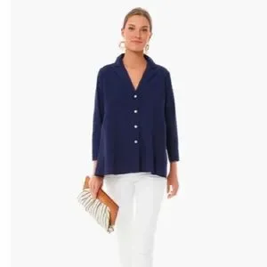 **Last One! Small** Navy Swiss Dot Scarlett Button Down POMANDER PLACE