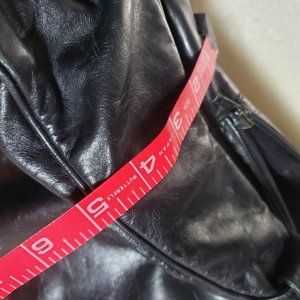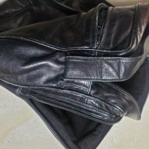 -large zippered pocket, corduroy/leather lined and 4 sewn flat leather pockets.