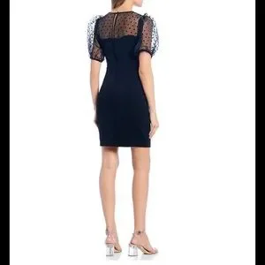 B.DARLIN Puff Sleeve Mesh Flocked Dot Sheath Dress
