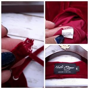 Red velvet backless bodysuit criss cross tie front