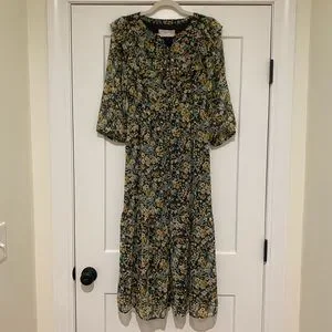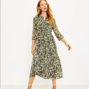 NWT Loft Floral Ruffle Midi Shirtdress