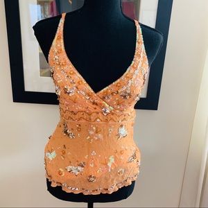 Bebe orange sequined top xs
