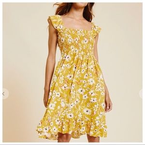- Sleeveless smocked front dress