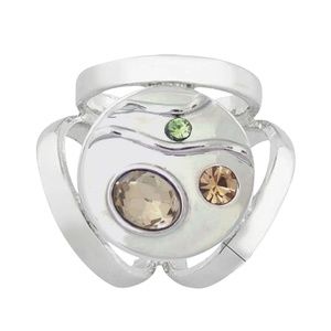 ~ Set of 4 includes three standard size snaps and the metal scarf holder. Two of the snaps are 20mm (3/4" diameter" and the blue resin is a "statement" snap which measures 1" diameter.