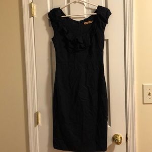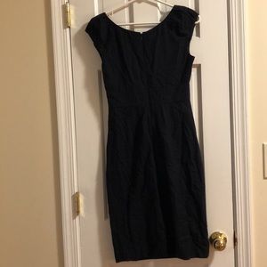 Rebecca Taylor size 2 navy dress. Knee length. 96% wool, 4% spandex. Lining: 100% polyester. Top clasp somewhat broken as seen in picture.