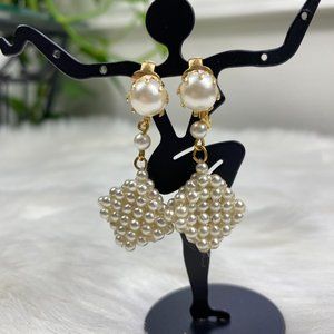 Vintage Faux Pearl Triangle Clip-on Earrings