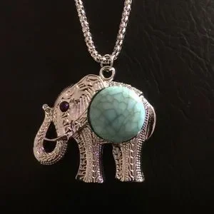 Elephant Turquoise Pendant Necklace 18”-20” NEW