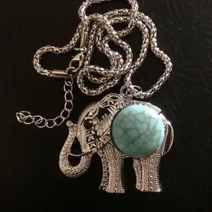 Beautiful, Elephant faux Turquoise Pendant Necklace 18”-20” (adjustable size). Elephant measures approximately 2” wide.