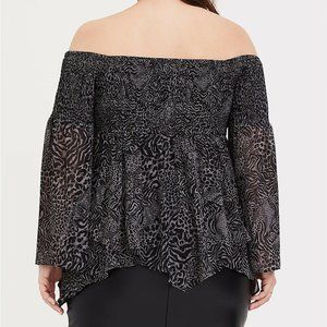 NWT Torrid Animal Print Off Shoulder Babydoll Tunic Top Plus Size 2X HW9871