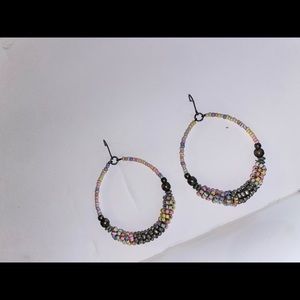Yellow purple blue and silver dangle earrings. NEVER WORN