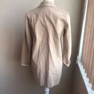 Preowned long sleeve double breasted cotton jacket . Lining is floral print . Has a tiny speck mark on back see last pic .