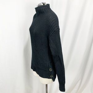 Madewell Mock Neck Side-Button Pullover Wool Blend Sweater Let everyone assume you've got a second home in the Scottish countryside in this chunky long sleeve pullover with a rolled mockneck and side buttons. Excellent condition - black is super hard to photograph.