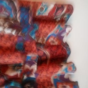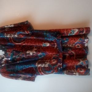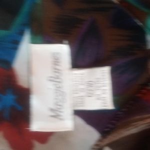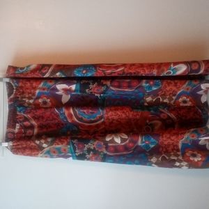 Good pre-owned condition. No flaws. No tears. No stains. No snags. No holes. Maxi length skirt with button closure on waistband. Top had button closure on shoulder. 100% polyester. Machine wash cold. Multi colored print.
