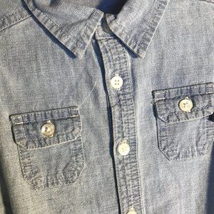 Chambray color, fully length sleeves when rolled down, chest pocket,