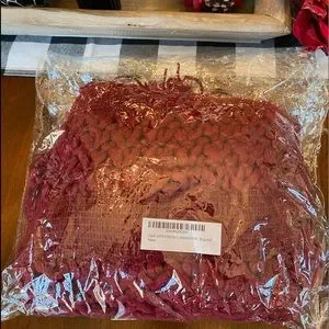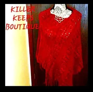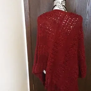 Still in the bag I never wore it, I misunderstood I thought it was a red poncho that glittered this is a burgundy poncho and it does not glitter just so you know. But itโs very beautiful just not what I was looking for.