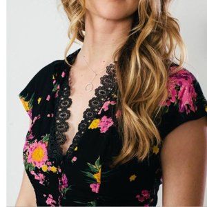 FREE PEOPLE Alora Black Floral Print Mini Dress sz 4 Women's Minidress