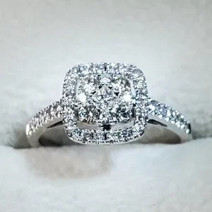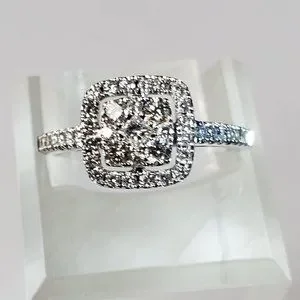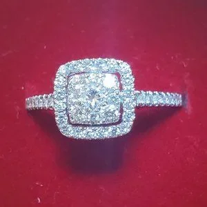 There are 9 stones in the central square . In the center of the square Princess cut 0.06ct