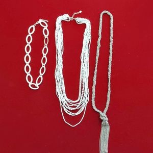 3 for $30 Fashion Jewelry Lot of Three Necklaces Stackable Silver Beaded