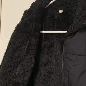 Fur lining on top half of interior jacket - fur does not extend down sleeves