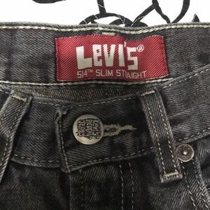 These kids Levi Strauss jeans are in wonderful condition. They are faded gray in color, boot cut 514 slim straight