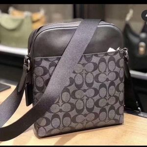 Coach Houston Flight Bag In Signature Canvas Gunmetal/Charcoal/Black