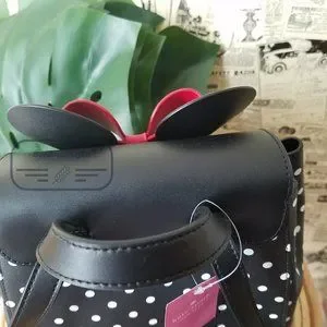 Kate Spade NWT Minnie Mouse Polka Dot Black Medium Backpack Refined Leather