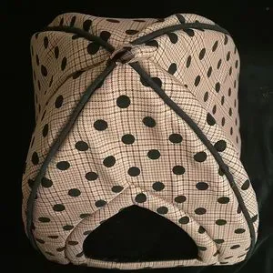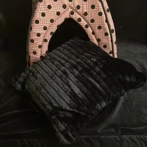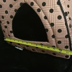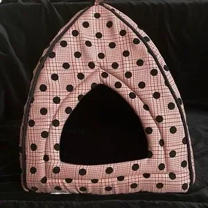 Super Cute Pet Cave Bed. Pink Plaid w/Black polka Dots. This is made so well & comes w/a soft fluffy pillow & Folds up for easy storage. The opening is smaller so please check measurements. My Dog & Cat wanted nothing to do with this,so it’s brand new & never been layed in. NWOT