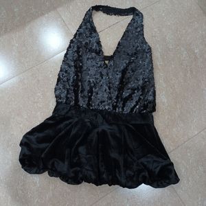 like new...size mentioned 6......bottom part is balloon type lines velvet......top part criss cross sequine.....side zip and tich buttons....