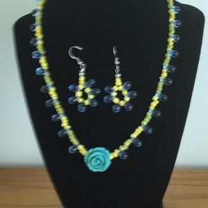 🌺Beautiful glass beads set of necklace & earnings hand crafted unique one of a kind🌺