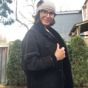 This Canadian made genuine shearing sheepskin coat is in amazing used condition. I cannot tell you how warm this coat has been through many cold,winter days! The black shearing is clean and it still has all the original leather buttons and button loops. The pockets are super comfy. Throw this on over any outfit! The size is no longer visible on the pocket tag but my guess between a small and a medium. Did I mention it was made in Canada π π¨π¦ π₯Ά