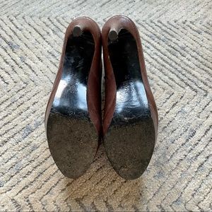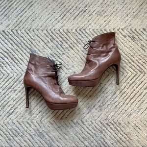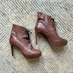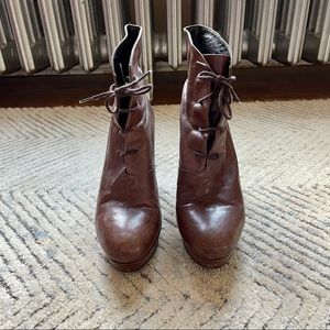 4 inch platform booties. Soft, buttery leather makes them super comfortable. Heels are but scuffed and worn - see photos.