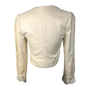 Sold originally at Bergdorf Goodman, RODARTE brand new with tags stunning cropped jacket crafted from white cashmere and silk. Oval geometric panels adorn the bodice & sleeves, decorative zig-zag edging. Lined in silk.