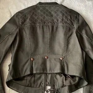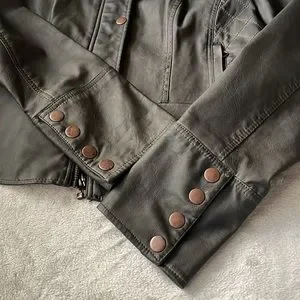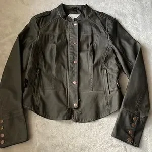 Anthropologie vegan leather, quilted dark olive jacket