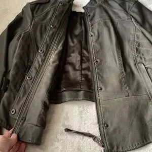 The jacket vegan leather has a vintage look the way the die is variated throughout the jacket.as shown in pictures
