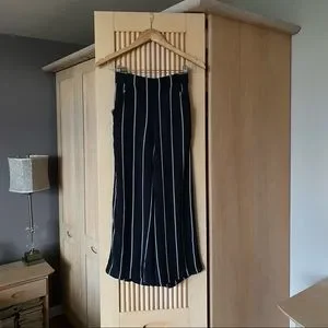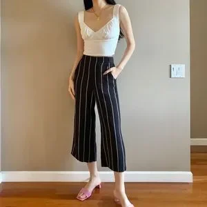 Aritzia Wilfred tie waist pants, dark navy with white stripes, size XS best for 25/26, elasticated waist with some stretch! Retail $120 + taxes!! Excellent condition, model is 5’8 and fits cropped, will be longer on shorter girls!