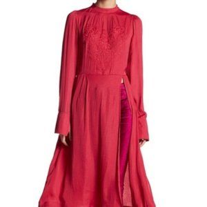 Free People Rose Mock Neck Embroidered Deep Slits Dress Lightweight S