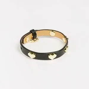 - Details: black, gold, smooth durable genuine bovine leather upper, embellished with heart studs/charms, secured with clip fastening, circular charm, Ted Baker signature branding.