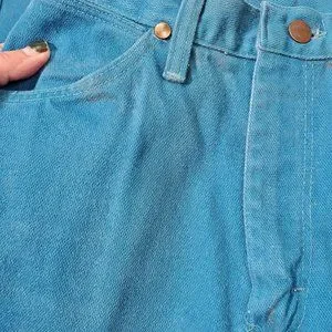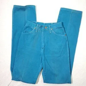 Vintage woman's size 8 Wrangler's bright blue jeans. Some light discoloration in lines from storage - please see pics. Measurements in pics also, 35" inseam