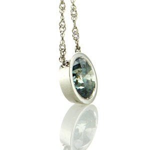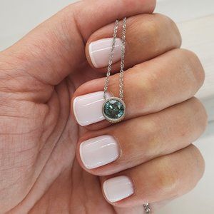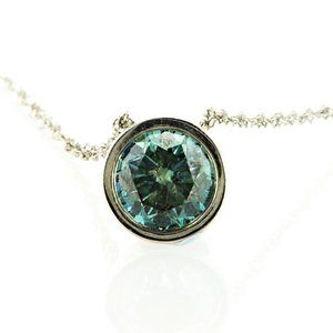 Diamond Bezel Pendant Fancy Turquoise Round Shape 14K White Gold 0.95 Carat