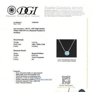 Round Diamond Bezel Pendant Turquoise Treated SI1 14K White Gold 0.95 Carat