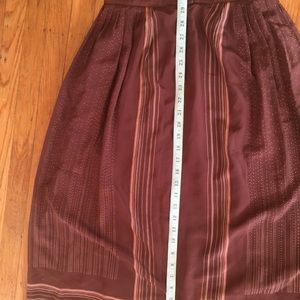 No labels, true vintage. Gorgeous 100% silk skirt in great used condition - only flaw is a couple small rips in the lining (pictured). Lining is polyester. Color is more of a chocolate brown like in the 3rd and 4th picture, not so purple brown like in the first two. See pics for measurements. Let me know if you have questions! Open to offers <3