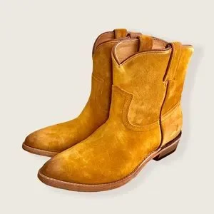 Frye Billy Short Camel Suede Leather South Western Pull On Cowboy Ankle Boots