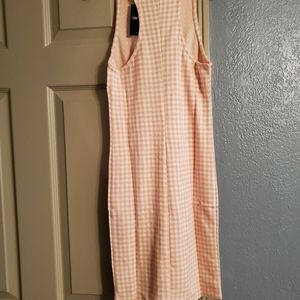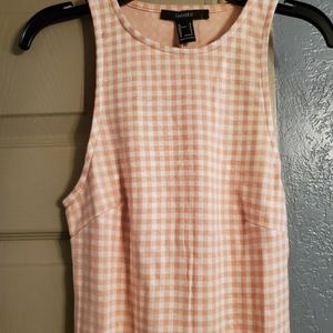 NWT mini dress featuring an allover gingham pattern Blush and cream color, sleeveless cut, a round neckline, and a bodycon silhouette.