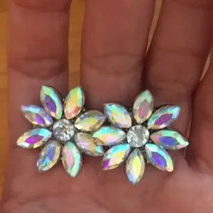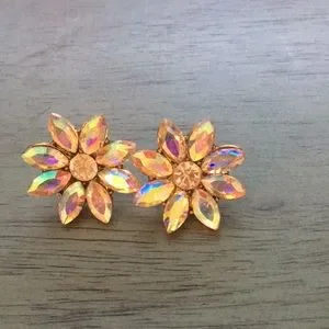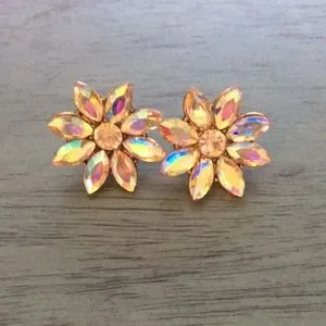 These gorgeous AB crystal flower earrings have an iridescent glow with a crystal center