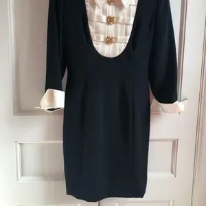 Julie and Leonard, Size 4, Black and cream dress. Black fabric rayon, cream satin fabric