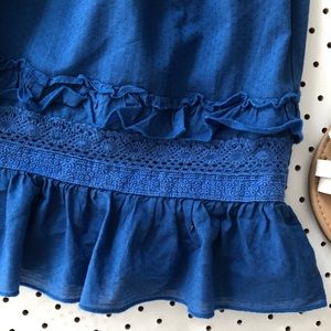 Gorgeous Blue skirt by Young Hearts by Collette Dinnigan, cotton, shirred elastic waist, ruffle and lace, fully lined
