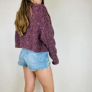 Free People Women's Size Purple Cable Knitted Long Sleeve Ribbed Hem High Neck Pullover Sweater